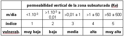 el objeto de evaluar la vulnerabilidad intrínseca de los acuíferos.